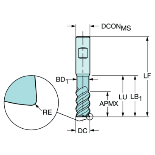 | Радиус при вершине (RE) | 1 mm |