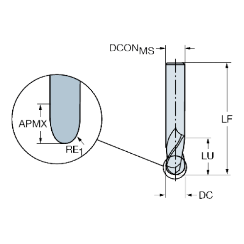 | Радиус при вершине (RE1) | 8 mm |