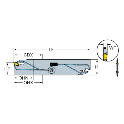 | Интерфейс со стороны станка (ADINTMS) | Parting off and grooving blade -size 25 |