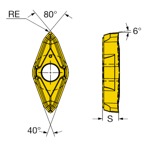 | Угол между главной режущей кромкой и wiper (KRINS) | 25 deg |