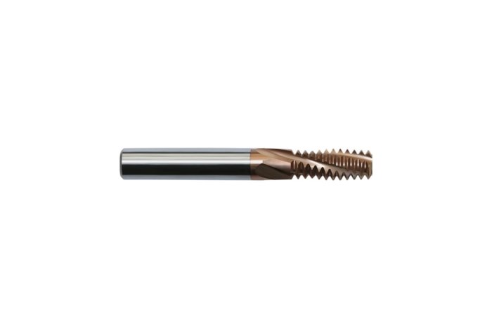Резьбофреза для работы по различным сталям и сплавам включая чугун и цветные металлы с покрытием PVD. для сбалансированной работы имеет винтовых четыре зуба.
