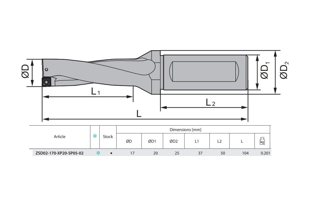 Стальной корпус сверла со сменными пластинами Ø17, с креплением под WELDON, подходящие пластины SPMX050204*** Рабочая часть корпуса 37 мм. Общая длина 104 мм.