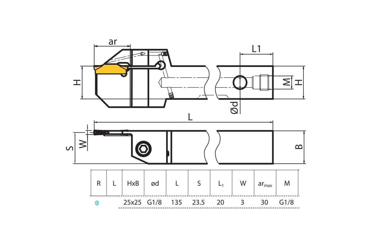 | Ширина державки | 25 мм |