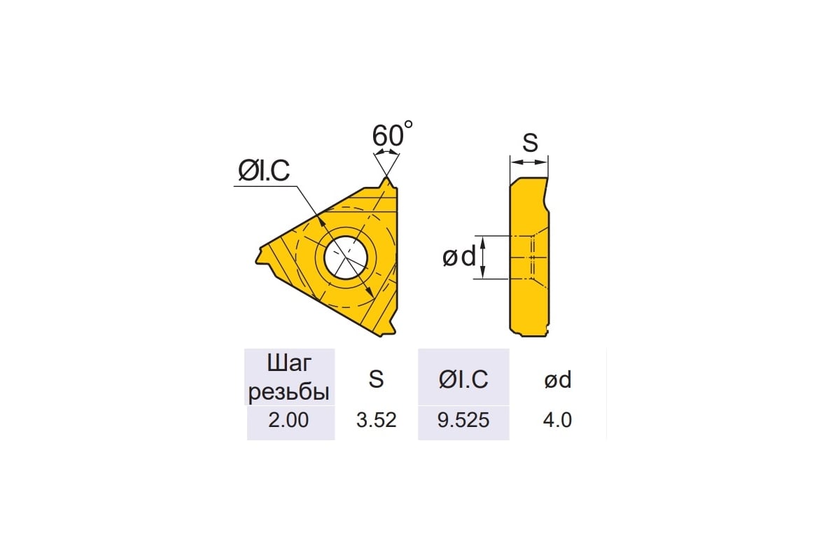 Пластина резьбовая для нарезания внутренней резьбы. Имеет PVD покрытие, сплав YBG205 предназначен для обработки стали, нержавеющей стали, чугуна и жаропрочных сплавов.