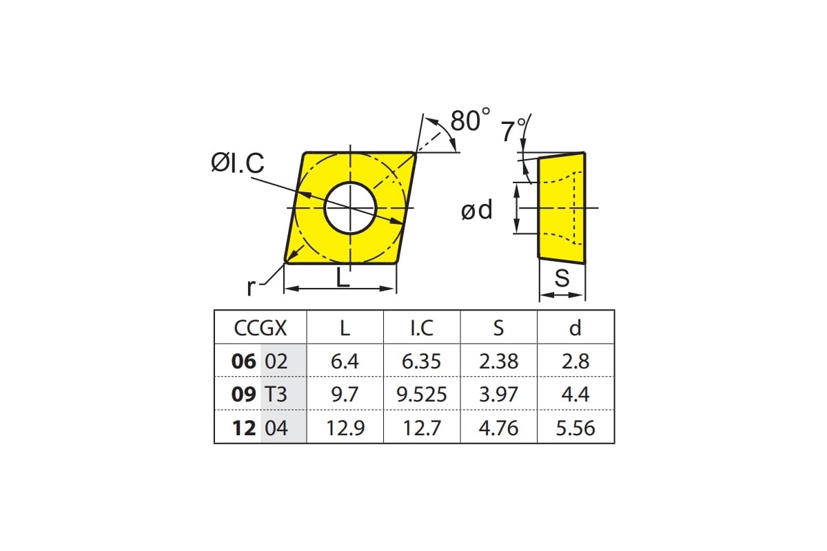 Твердосплавная пластина для обработки цветных металлов, в частности алюминиевых сплавов. Сплав YD101 предназначен для обработки N05 - N20, K05 - K20.
