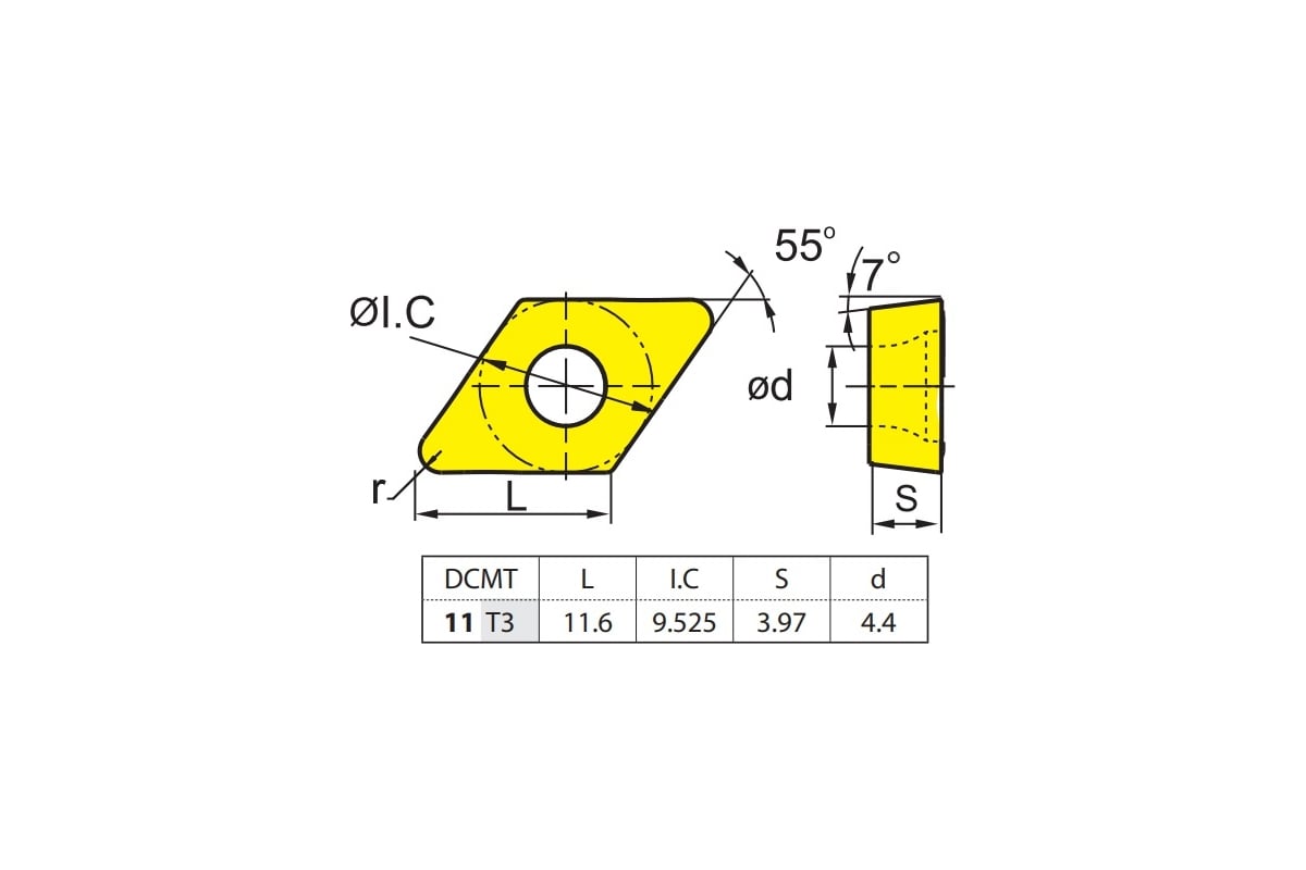 DCMT11T308-HM YBC252 Оптимальная износостойкость для широкого спектра применения. Группа Р20-Р35.