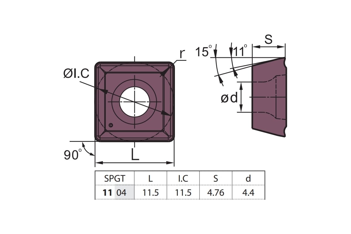 Твердосплавная пластина SPGT110408-PM YBG205 с покрытием PVD, для получистовой и чистовой обработки стали, нержавеющей стали и суперсплавов. Группа обработки Р10-Р30, М10-М25, S15-S25.